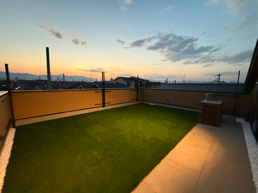 アウトドア好きなご家族の想いを形にした屋上住宅。ドッグランやキャンプを楽しめる屋上や充実した収納、家事動線に配慮した室内設計、ミストサウナ付き浴室など、こだわりを詰め込み「理想の家」と喜ばれました。