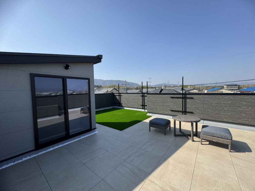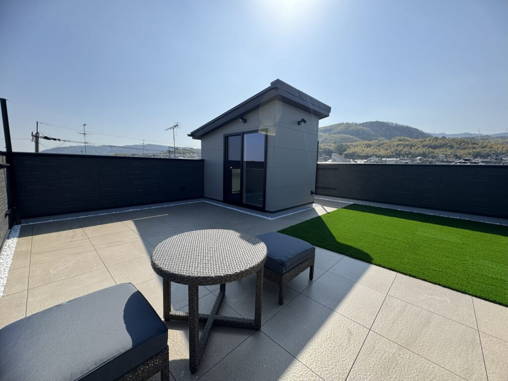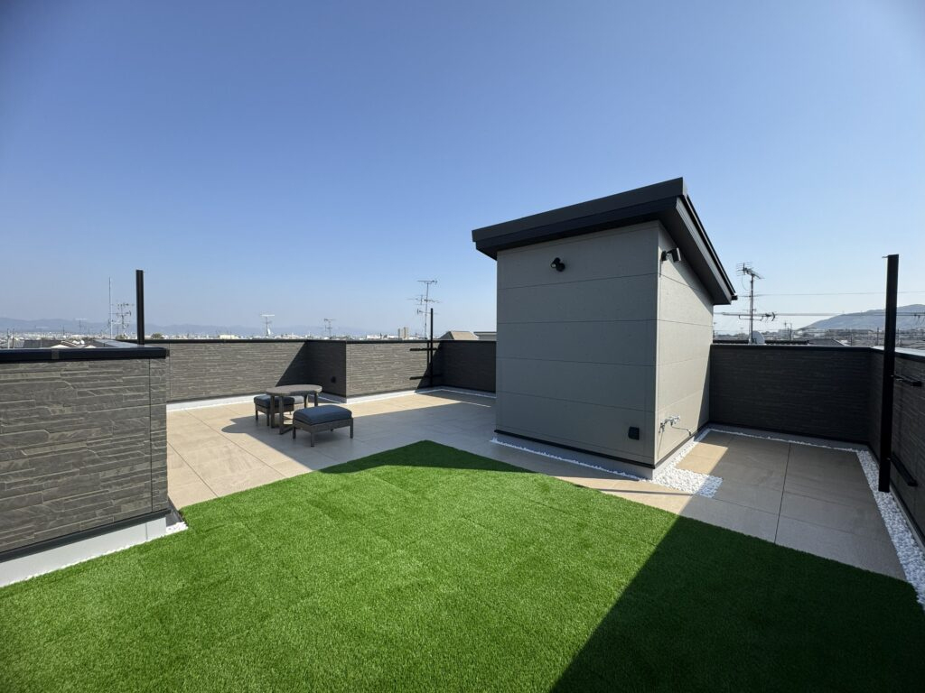 北側道路や山が近い立地条件を逆手に取り、採光とプライバシーを両立。吹き抜けと屋上で光と景色を取り込み、動線や可変性にも配慮した、家族とともに育つ住まい。